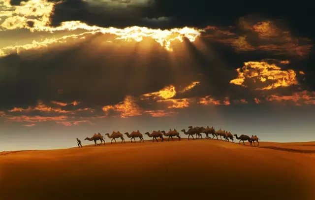 絲綢之路上的駝隊(duì)和主人也是經(jīng)驗(yàn)豐富的模特,他們能在沙漠中找到最適合拍攝的水洼、沙坡,和最佳的日落時(shí)間,調(diào)度和隊(duì)形也不需要攝影師操太多的心。