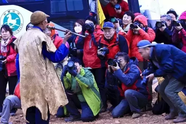 看到主人公的到來(lái),攝影師們興奮異常。老王駕輕就熟地跟攝影師們交涉起來(lái),向他們介紹大片拍攝最佳的時(shí)間和角度。