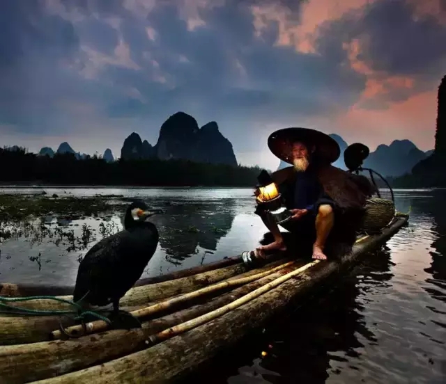 漓江漁民的工作分為早班和晚班,清晨,漁民們拿上道具——魚(yú)鷹和煤油燈,開(kāi)始一天的工作。這里收費(fèi)相對(duì)高昂,一百多一次,每次表演只有幾分鐘,所以攝影師們必須抓緊時(shí)間拍攝,錯(cuò)過(guò)了好的時(shí)機(jī),就只能再次付費(fèi),排隊(duì)等下面幾班人。