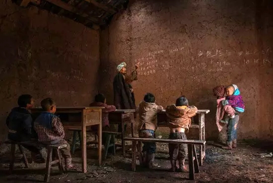 這是一張?jiān)?jīng)轟動(dòng)過(guò)攝影界的照片,攝影師憑借這張照片在國(guó)際攝影比賽中獲得過(guò)高達(dá)12萬(wàn)美元的獎(jiǎng)金。后經(jīng)當(dāng)?shù)厝俗C實(shí),照片中的這間教室其實(shí)早已經(jīng)廢棄不用,照片中所有的人物和場(chǎng)景都是擺拍,包括那位右邊那位露屁股的小孩,都是設(shè)計(jì)中。