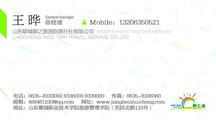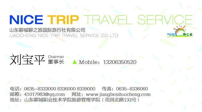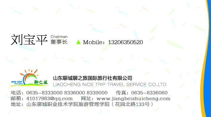 電話:0635-8333000 8336000 8339000 傳真:0635-8330520 地址:山東省聊城市東昌府區(qū)財(cái)干東路19號(hào) 郵編:252000 官方網(wǎng)站:www.juzishei.cn 歡迎致電全國統(tǒng)一(免長途)熱線:400 0635 369 國內(nèi)旅游請按1 國際旅游請按2 聊城旅游請按3 票務(wù)會(huì)議租車請按4 人工請按0 版權(quán)所有:Copyright(C) 劉寶平工作室_Mr.Liu Stu 聊城市旅游攝影協(xié)會(huì) 「我們」? 商會(huì)丨俱樂部丨實(shí)業(yè)公司 山東聊城聊之旅國際旅行社有限公司
