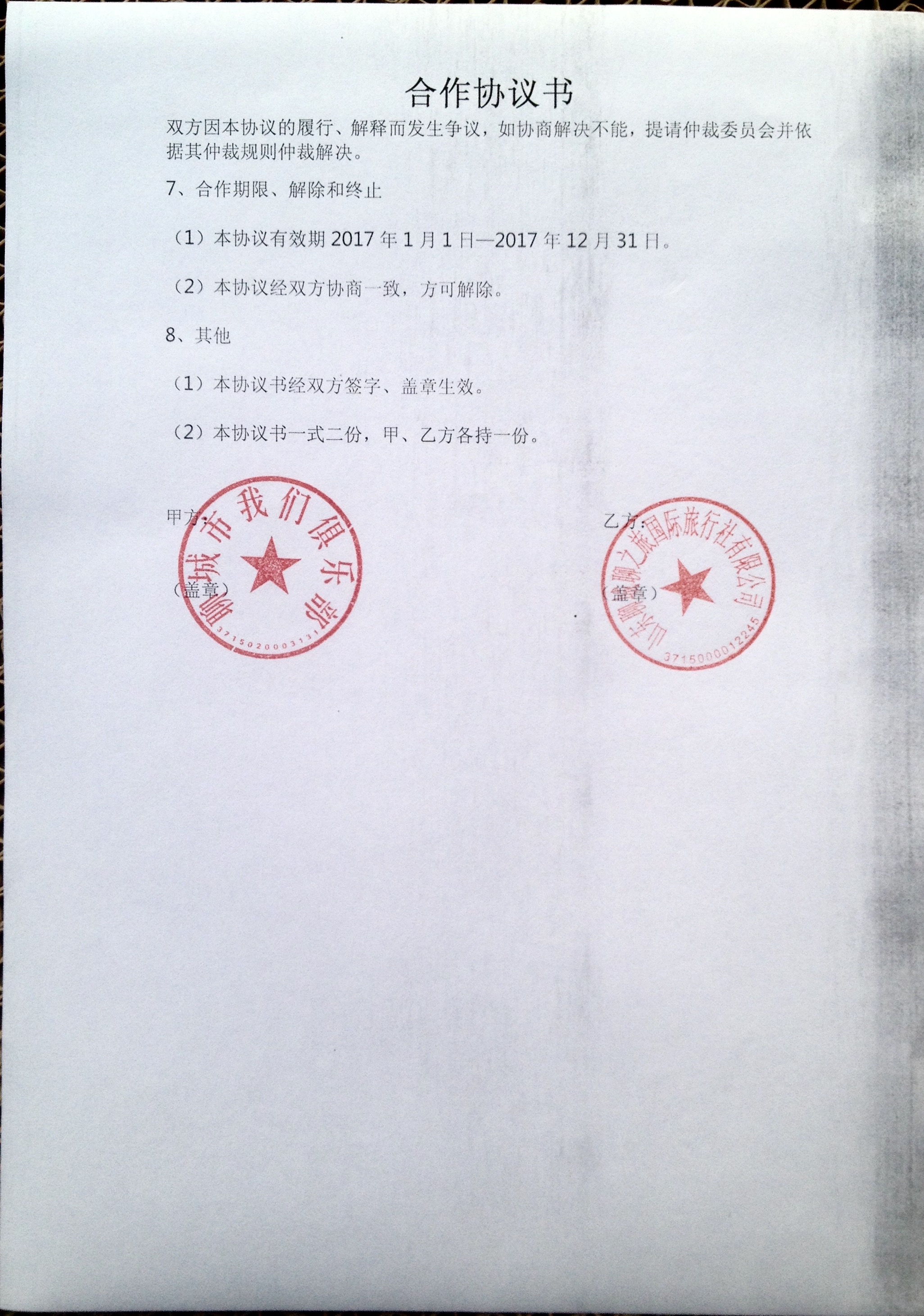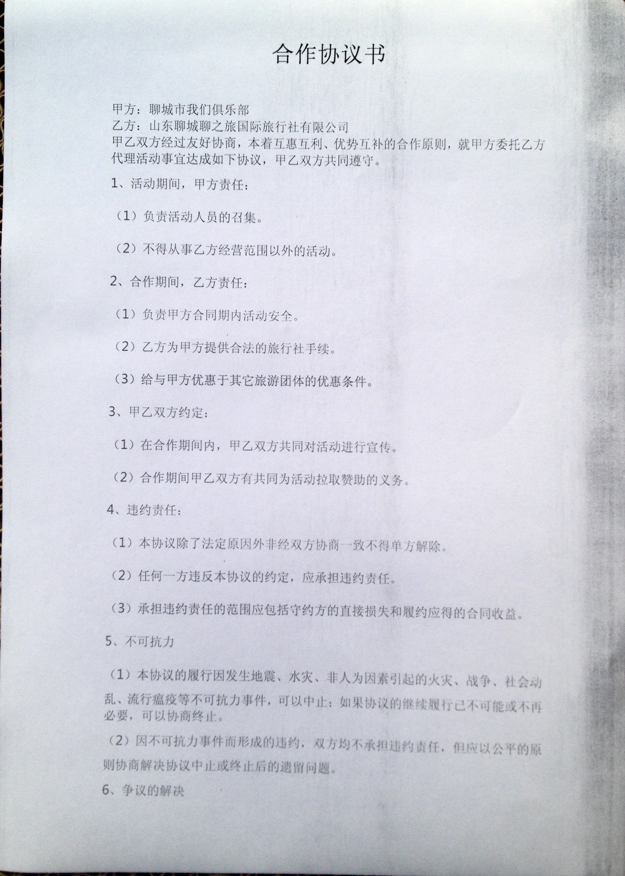 為響應(yīng)國(guó)家政策號(hào)召,聊城市我們俱樂部委托我公司代理活動(dòng)事宜,雙方經(jīng)過友好協(xié)商,本著互惠互利、優(yōu)勢(shì)互補(bǔ)的合作原則,達(dá)成以下協(xié)議。
