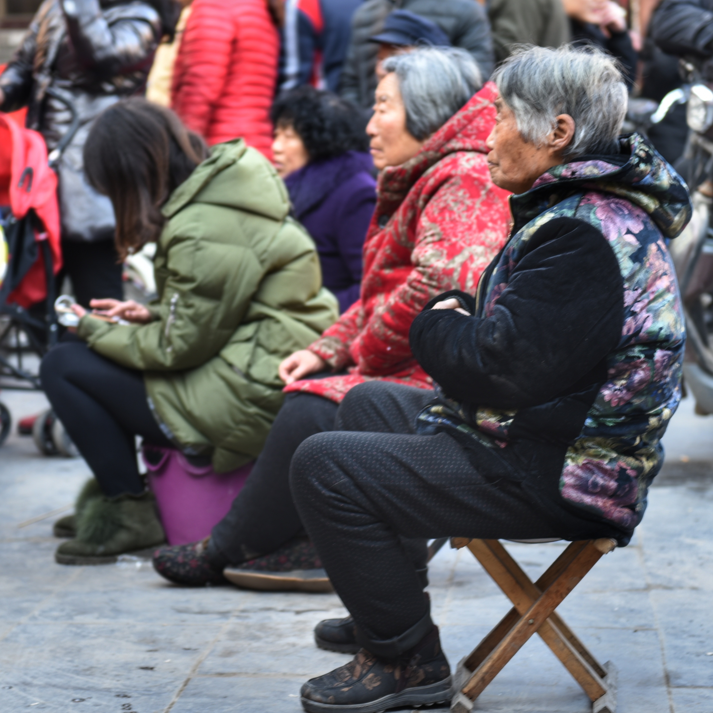人群中居然有位美女也在看大戲,我想她應(yīng)該是陪著自己的長(zhǎng)輩來(lái)的吧,不然怎么一直低頭玩手機(jī)呢。