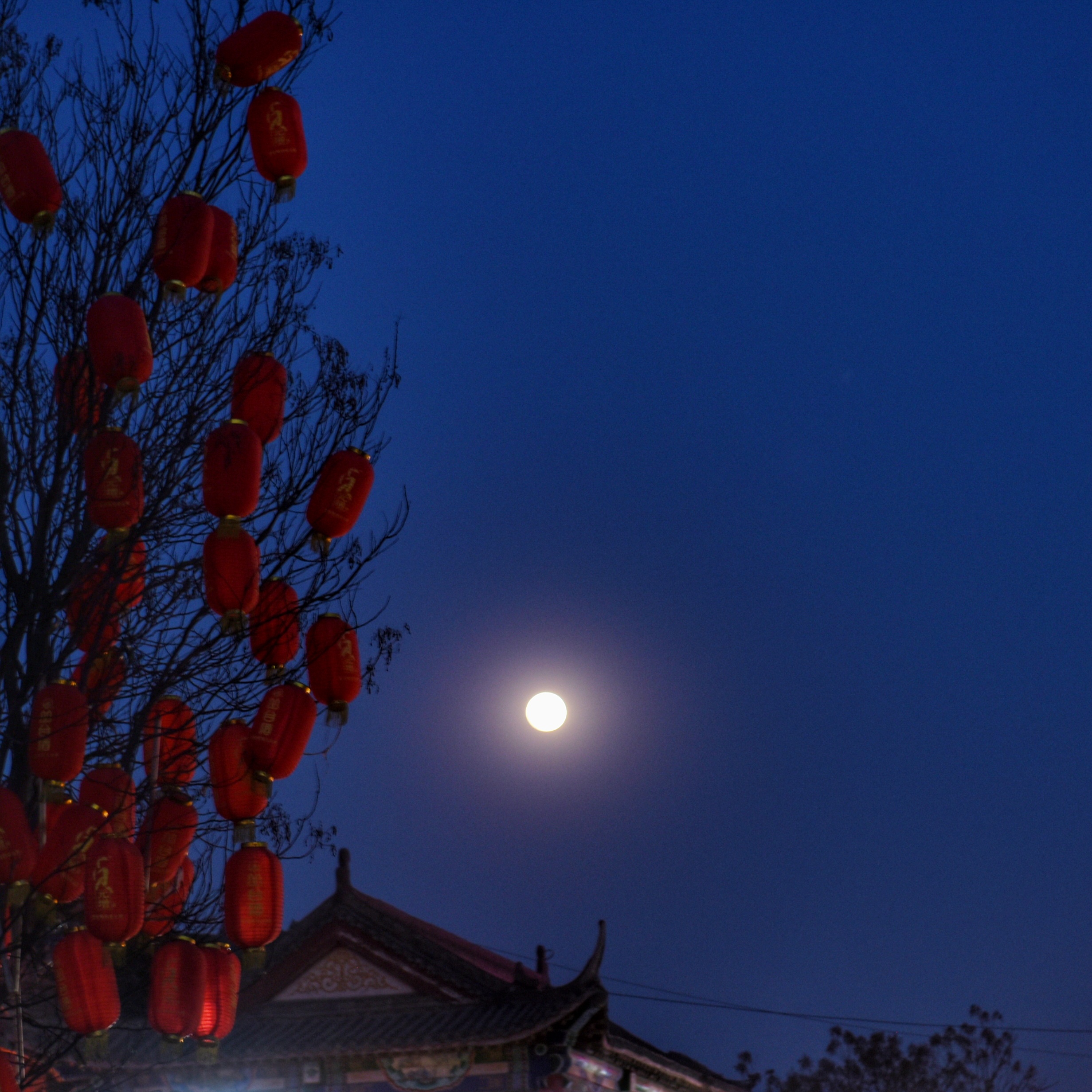 夜幕降臨華燈初上,此時(shí)的天空像一塊洗凈了的藍(lán)綢緞,升起的月亮就是鑲在這藍(lán)綢緞上的大銀盤(pán)。