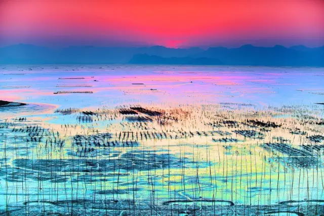 霞浦風(fēng)光拍攝講究個(gè)包圍構(gòu)圖,先用廣角拍攝幾張大場(chǎng)景,之后用長(zhǎng)焦慢慢切割和雕琢畫面,選擇不同的構(gòu)圖拍攝出新奇的畫面。對(duì)灘涂做精細(xì)切割畫面成小畫面得把握好幾點(diǎn)。
