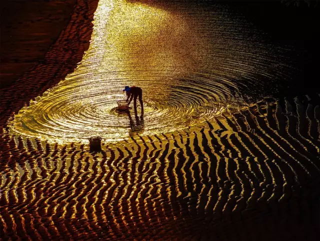 霞浦灘涂的虎皮般的紋路是由灘涂中沙粒和泥漿組成,潮水才退下時(shí)含有水分較多此時(shí)能反光,需要刻畫虎皮紋路鼓起的紋路,就得選擇光線低位的早晚拍攝,此時(shí) 的虎皮紋陰陽交錯(cuò),紋路格外明顯。