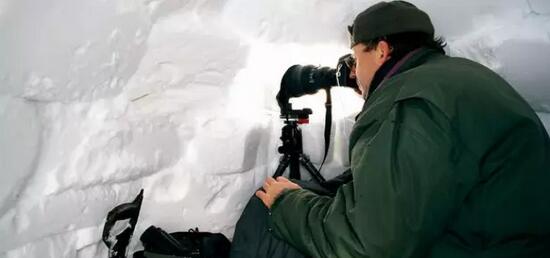 拍攝雪花晶體時,我們 為避免雪花因閃燈離微 小晶體過近,散發(fā)的炙 熱溫度使雪花融化,需要放棄利用開啟閃光燈 讓晶體更具有光感和質(zhì) 感的方法。