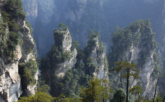張家界以其得天獨厚的旅游資源聞名于世。以中國第一個國家級森林公園張家界和天子山、索溪峪兩個自然保護區(qū)組成的武陵源風景區(qū)面積達369平方公里,區(qū)內以世界罕見的石英砂巖峰林峽谷地貌為主體,集桂林之秀、黃山之奇、華山之險、泰山之雄于一體,藏賂、橋、洞、湖、瀑于一身,有“擴大的盆景、縮小的仙山”之美稱。