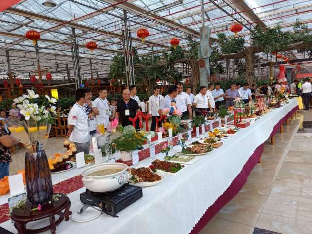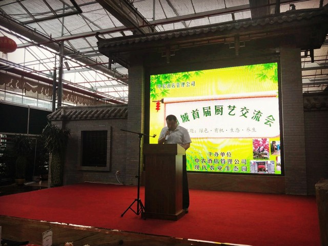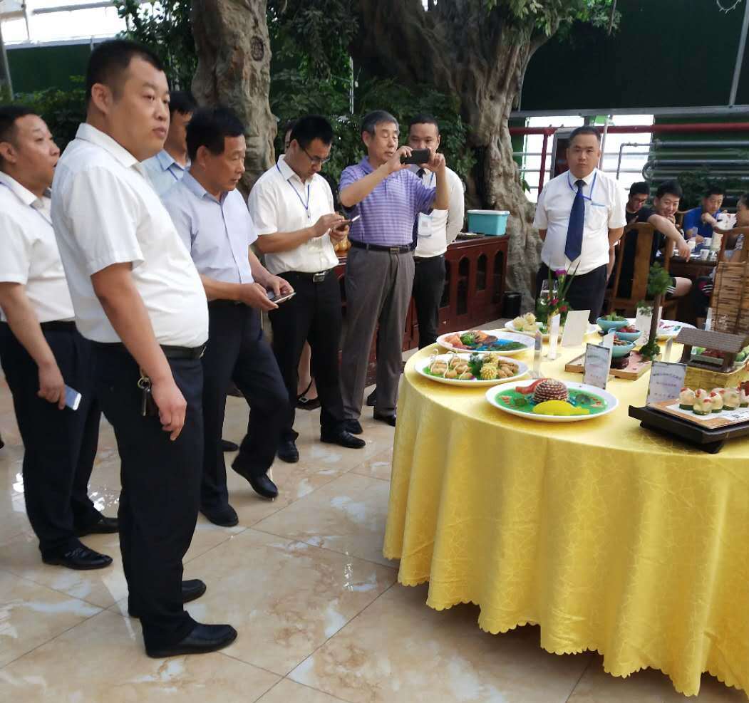 莘州集團(tuán)旗下中農(nóng)酒店管理公司總經(jīng)理李傳輝,誠邀各位參會(huì)嘉賓參觀生態(tài)園廚藝交流會(huì),介紹生態(tài)園特色,欣賞精美菜品。各位參展嘉賓為廚藝交流會(huì)表示贊許。