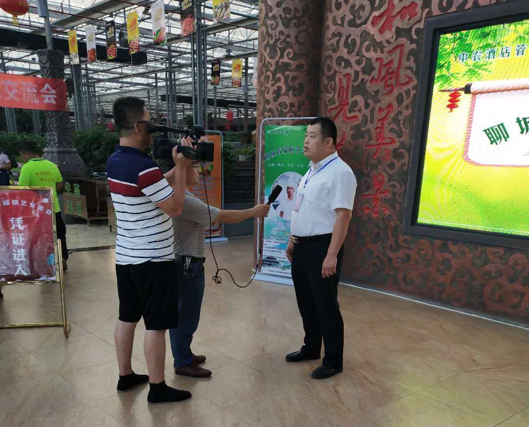 中農(nóng)酒店管理公司總經(jīng)理李傳輝、現(xiàn)代農(nóng)業(yè)生態(tài)園餐廳總廚商平勇在活動(dòng)現(xiàn)場,接受莘縣電視臺(tái)記者專訪。李總向記者詳細(xì)闡述組織廚藝交流會(huì)的意義,這是聊城市同行餐飲人的集會(huì),有利于增進(jìn)互相的了解,促進(jìn)共同進(jìn)步,共創(chuàng)更加輝煌的酒店餐飲業(yè)。商廚向記者介紹了餐飲中菜品的相關(guān)情況。