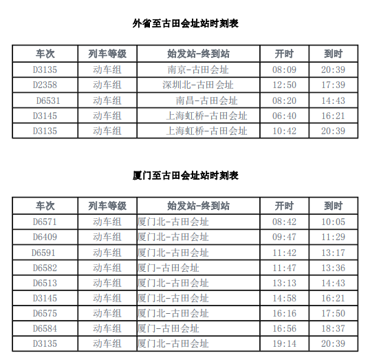 2. 各地到廈門動車北站,動車北站可以自行買動車票前往古田會址站,專人接站送上杭酒店(約 40 分鐘)