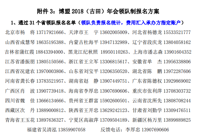1、報名方式:向指定領(lǐng)隊報名、不設(shè)領(lǐng)隊省區(qū)向會務(wù)組報名。