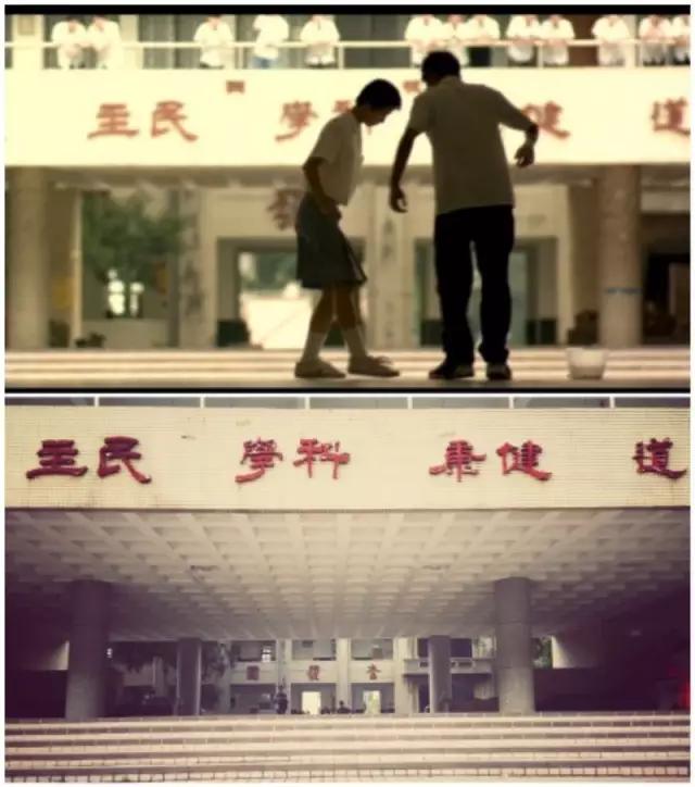 其實(shí)片中男女主人公就讀的學(xué)校,就是臺北師大附中,它位于臺北市大安區(qū)信義路三段143號,藍(lán)色是師大附中的代表色,大門是師大附中位于信義路三段的大門,“藍(lán)色大門”就是這么來的啦~