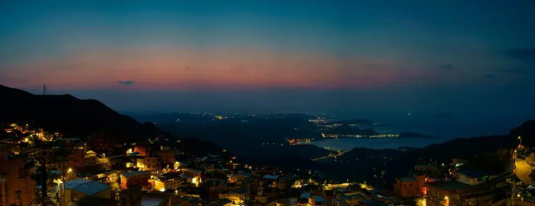 除了沿著巷子體會這獨(dú)一份的曲徑通幽之外,俯瞰視角的九份,也非常美,老街燈火盞盞,不遠(yuǎn)處的海面上漁火星星點(diǎn)點(diǎn)。