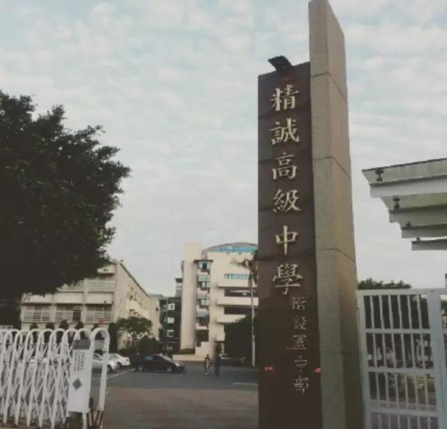 精誠中學(xué)的校園很是小巧,一進(jìn)校門就可以直接看到操場,司令臺和校舍。
