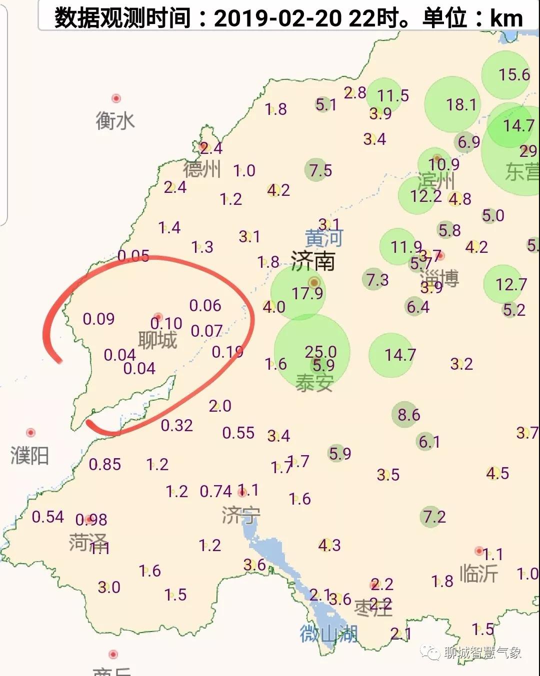 圖三:20日22時能見度數(shù)據(jù)顯示:我市能見度當前為全省最低