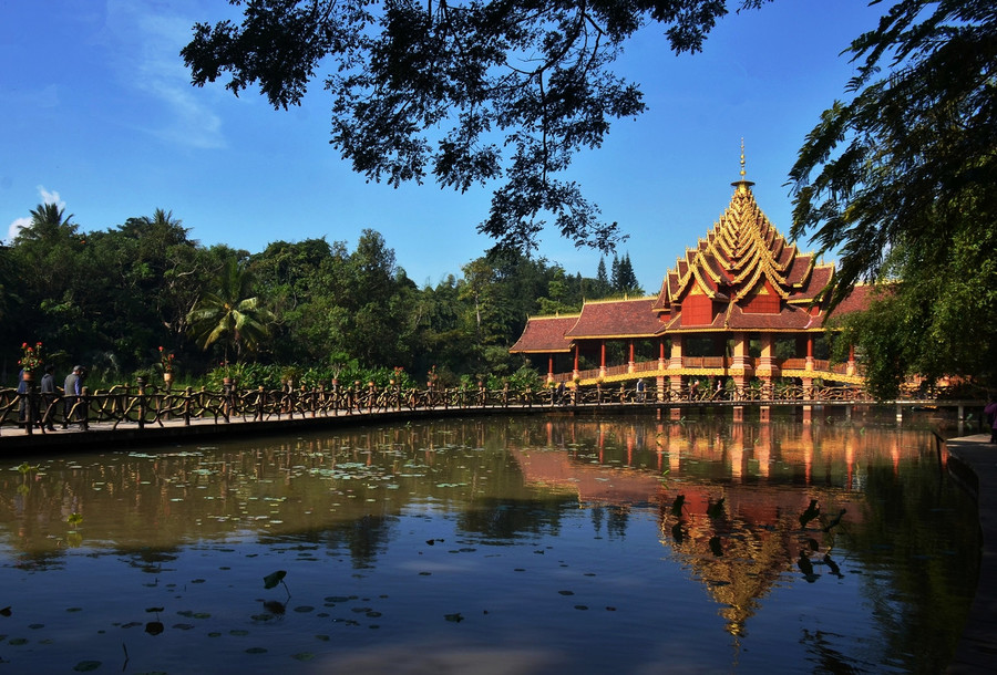 原始森林中掩映的竹樓、傣家姑娘們婀娜的身影、優(yōu)美的孔雀舞讓這里更添幾分風(fēng)情。