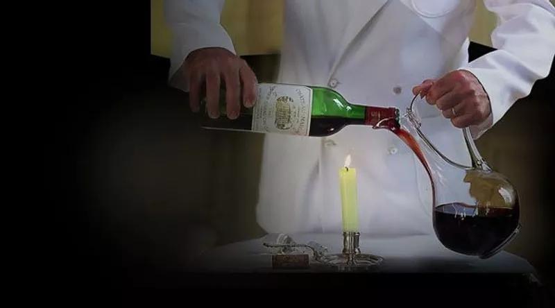 在傳統(tǒng)的侍酒服務(wù)中,開(kāi)瓶時(shí)需要在酒瓶下方點(diǎn)燃一根蠟燭,選擇合適透亮的角度,在燭光前緩緩將酒液倒入醒酒器中,直到看見(jiàn)沉淀流動(dòng)到瓶頸處停止。