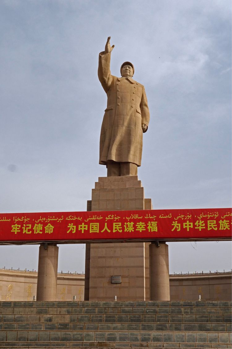 偉大領(lǐng)袖毛主席的雕像高高聳立在城市廣場。