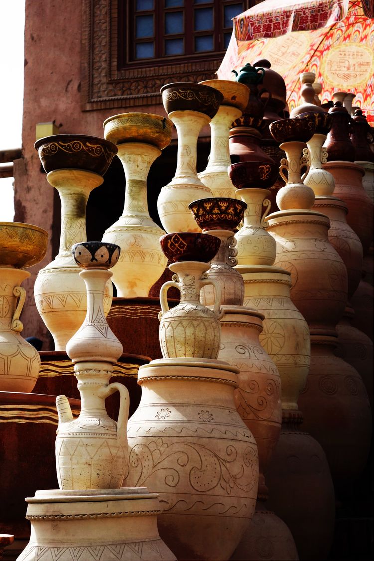 一件件具有維吾爾族風(fēng)格的陶瓷制品強(qiáng)烈吸引著我,可惜無法帶回家來。