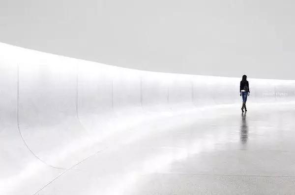 如果極簡(jiǎn)主義作品還能夠說故事的話,必將會(huì)提升一個(gè)層次。例如,極簡(jiǎn)風(fēng)格的街頭攝影就是將“人”作為主要元素,因?yàn)榧词谷宋锼籍嬅娌欢?,也往往?huì)成為照片的焦點(diǎn),而人與背景的互動(dòng),會(huì)帶來豐富的故事性。注意背景的畫面,例如平行、引導(dǎo)線、弧形,都可以輔助主體,構(gòu)成漂亮的作品。