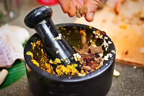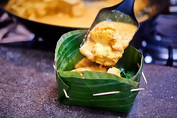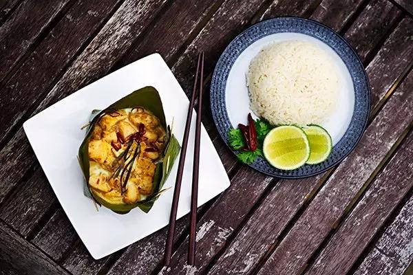 這道菜原本是古高棉人用來(lái)慶祝水節(jié)的美食,將肉類(魚、雞、豬、牛肉)裹在香蕉葉中烘烤,再加入椰汁、椰漿、高棉咖喱醬、檸檬葉和當(dāng)?shù)厥卟?,上桌以后不僅顏值高,椰香魚香葉香渾然一體,口感綿密有點(diǎn)像咖喱。