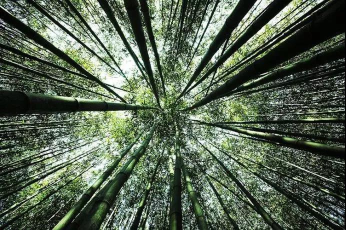 仰拍時(shí),可以使用廣角鏡頭,將竹子凝聚在一起,產(chǎn)生緊湊感。
