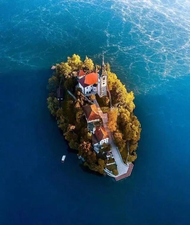 澄澈的布萊德湖的湖心之上,這座童話小鎮(zhèn)就這么獨自佇立著,只有坐著小船才能到達(dá),仿佛真的與世隔絕。