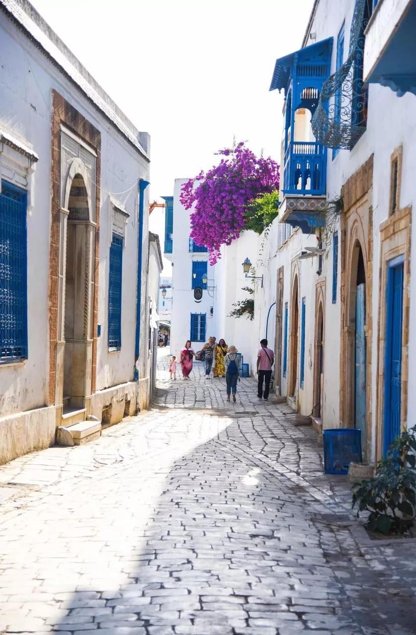 清爽的藍(lán)白色是小鎮(zhèn)的標(biāo)志,如果你不喜歡摩洛哥的商業(yè)化,那么就請來突尼斯吧。
