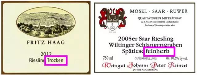 Feinherb:與Halbtrocken類似,沒有法律控制,通常比Halbtrocken酒稍甜。Fein相當(dāng)于英文的fine。