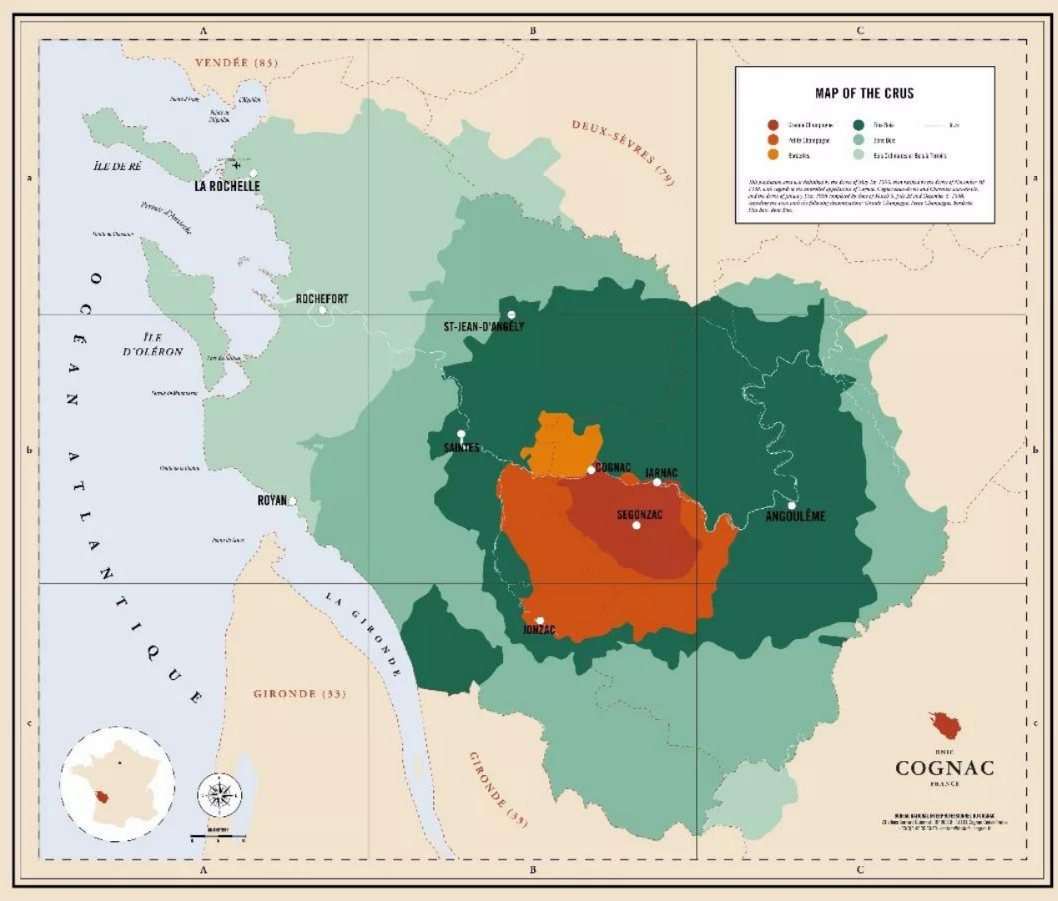 干邑下轄六個子產(chǎn)區(qū)。分別是: