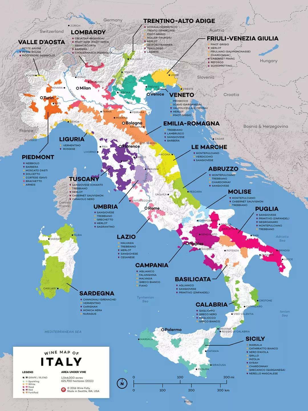 現(xiàn)時(shí)(2019年2月),意大利全國(guó)一共有118個(gè)IGT產(chǎn)區(qū)。