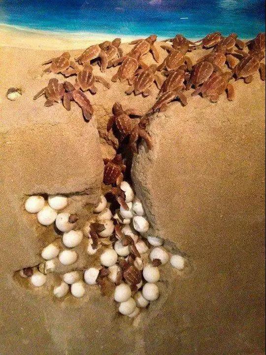 陽(yáng)光燦爛的天氣,小海龜紛紛破殼而出,成群結(jié)隊(duì)的爬向大海。