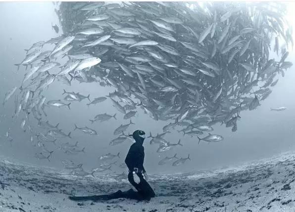 海底潛水,有幸看到成千上萬(wàn)只魚群聚集而來(lái),這陣勢(shì)好像要吃掉這個(gè)異類一樣。