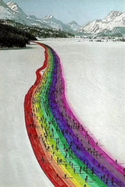 這條在雪后開辟的彩虹大道上,成千上萬(wàn)的馬拉松參賽者在一邊跑步一邊欣賞風(fēng)景。