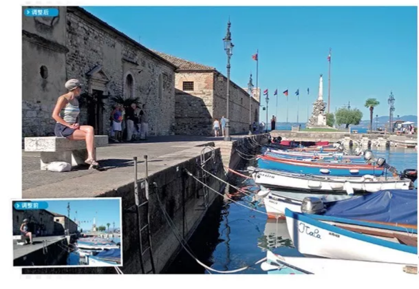 再比如下面這組對(duì)比例圖,圖一的照片整個(gè)感覺就是灰蒙蒙的,沒有什么色彩層次感。圖二的整體亮度就提升了,而且不同物體的色彩也都很好的展現(xiàn)出來。