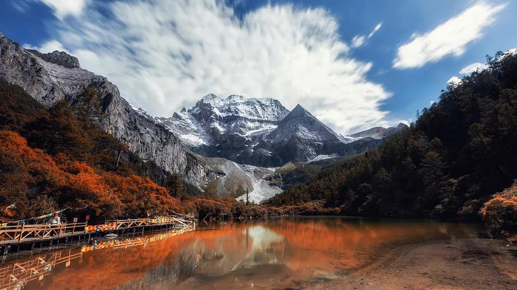 這里高山陡峭,山上生長著參天的樹木,群山的顏色隨著四季變換著,白雪下裸露出的黑色巖石訴說這千年藏地的蒼涼;