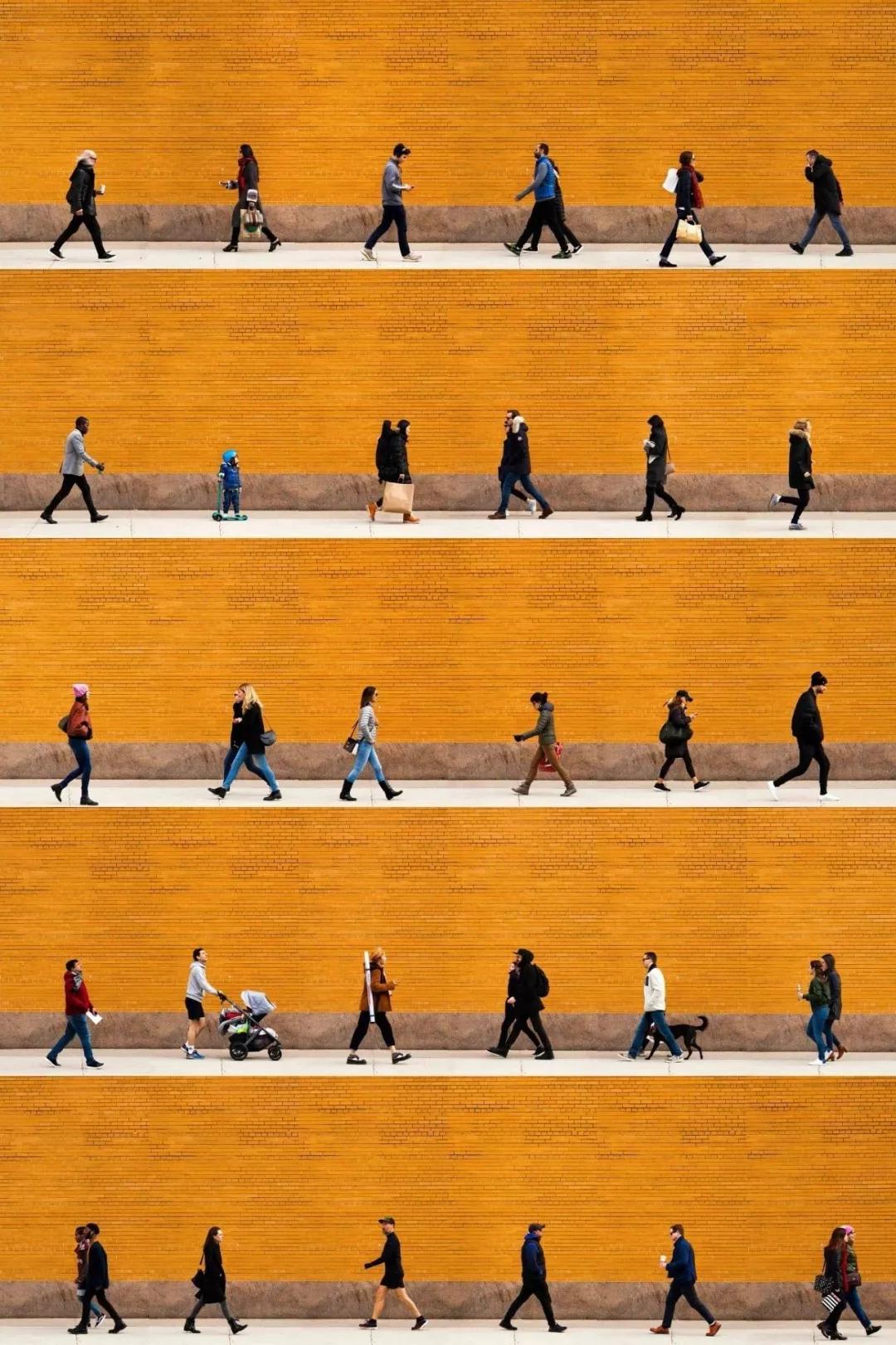 如果單獨拍攝一張這樣的街頭照片的話,那就顯得太單調和無趣了,但當你注入了時間和專注,你會發(fā)現(xiàn)這些影像有了不一樣的美感和力量。