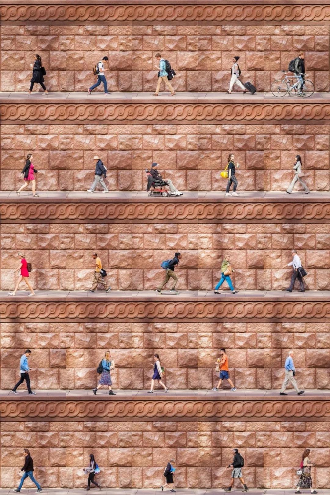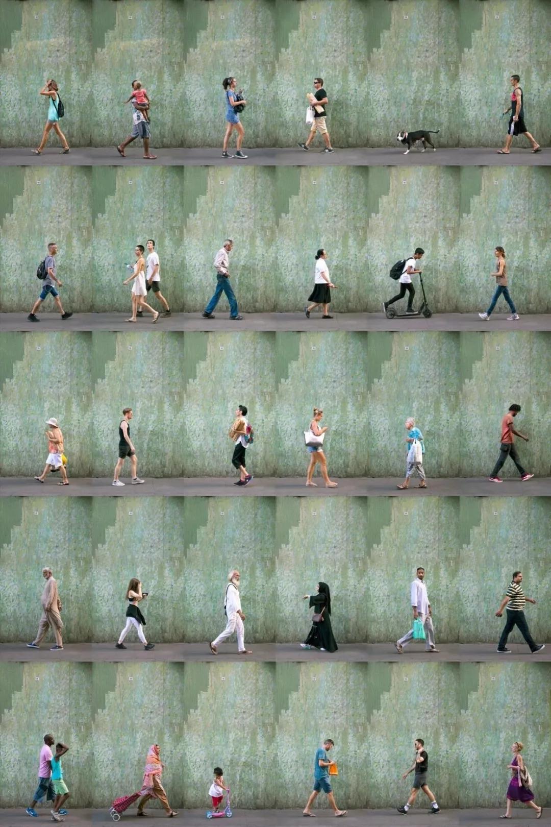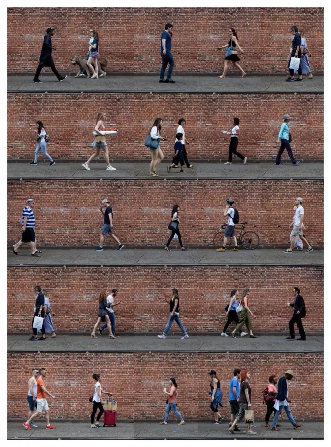 “我在城市里四處游走,有時找個地方坐上幾個小時,然后在不被注意的情況下,拍下那些隨意靠墻經(jīng)過的人?!?/span>