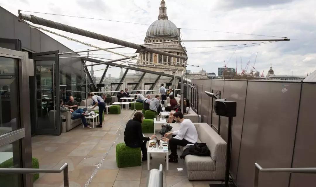 在圣保羅大教堂旁邊的One New Change購物中心頂樓,有室內(nèi)也有室外空間,白天跟晚上的氛圍不太一樣,晚上圣保羅也會(huì)打燈,晝夜都很適合來。