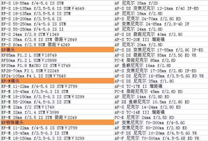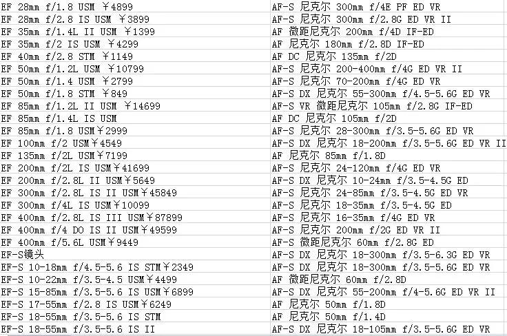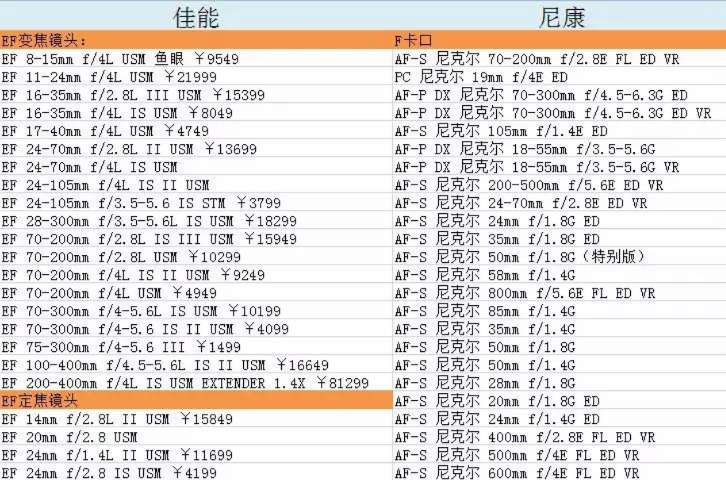 下面給大家整理了佳能、尼康目前在售的單反鏡頭,由此可見,廠商為了給廣大攝影愛好者提供一個(gè)更好的攝影體驗(yàn),也是牟足了勁。