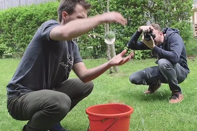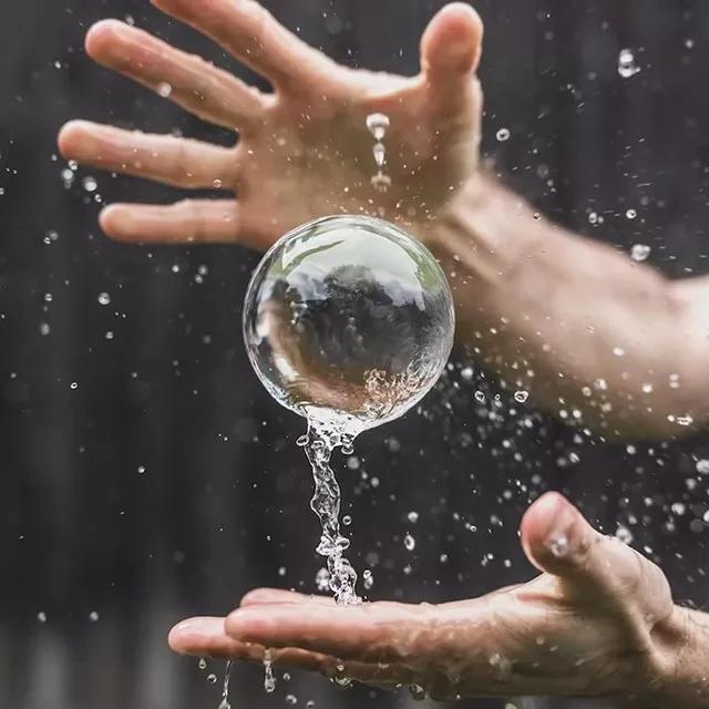 比如說,你可以讓一個朋友放入水中,然后將水晶球帶著水花拋出,重復(fù)這一過程;你在一旁用高速快門抓拍在空中的球體: