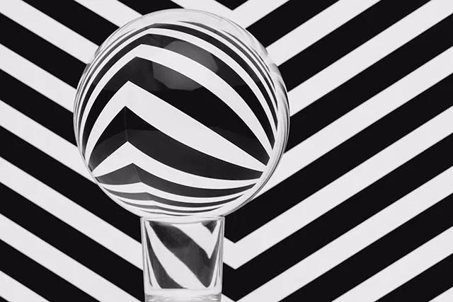 你也可以“定制”背景,用電腦設(shè)計一些平行/交錯/粗細(xì)變化的線條組,打印出來后作為背景,放入水晶球進行拍攝。