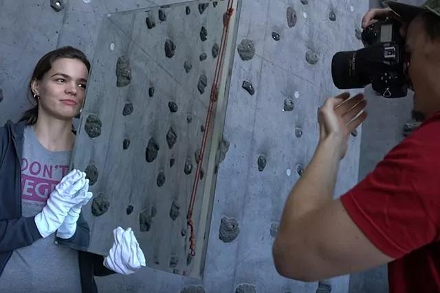 讓拍攝對象站在玻璃碎片“墻”前,攝影師在側方拍攝。調整攝影師和拍攝對象的站位,你可以拍出這樣的效果: