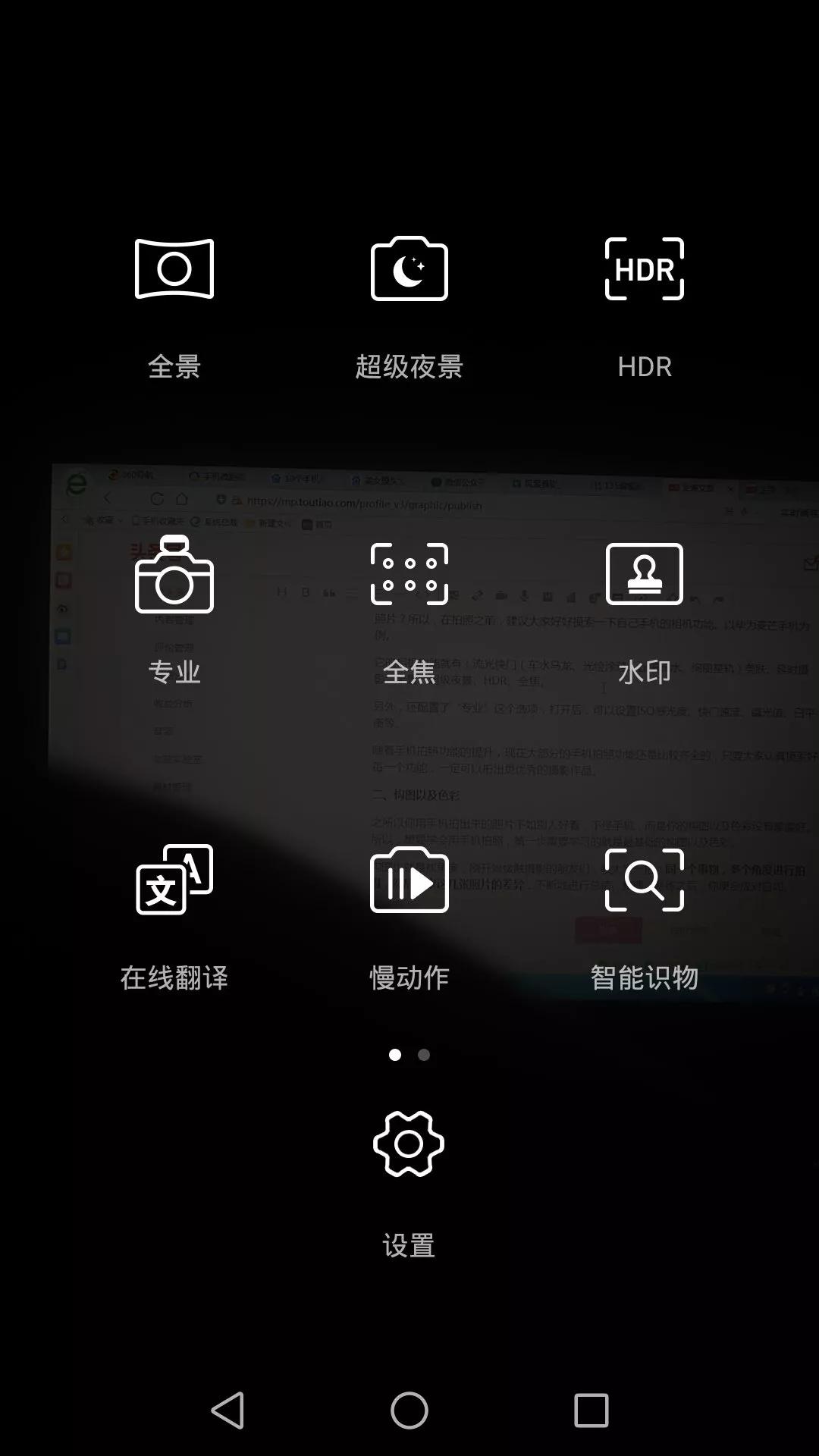華為麥芒手機拍照功能頁面