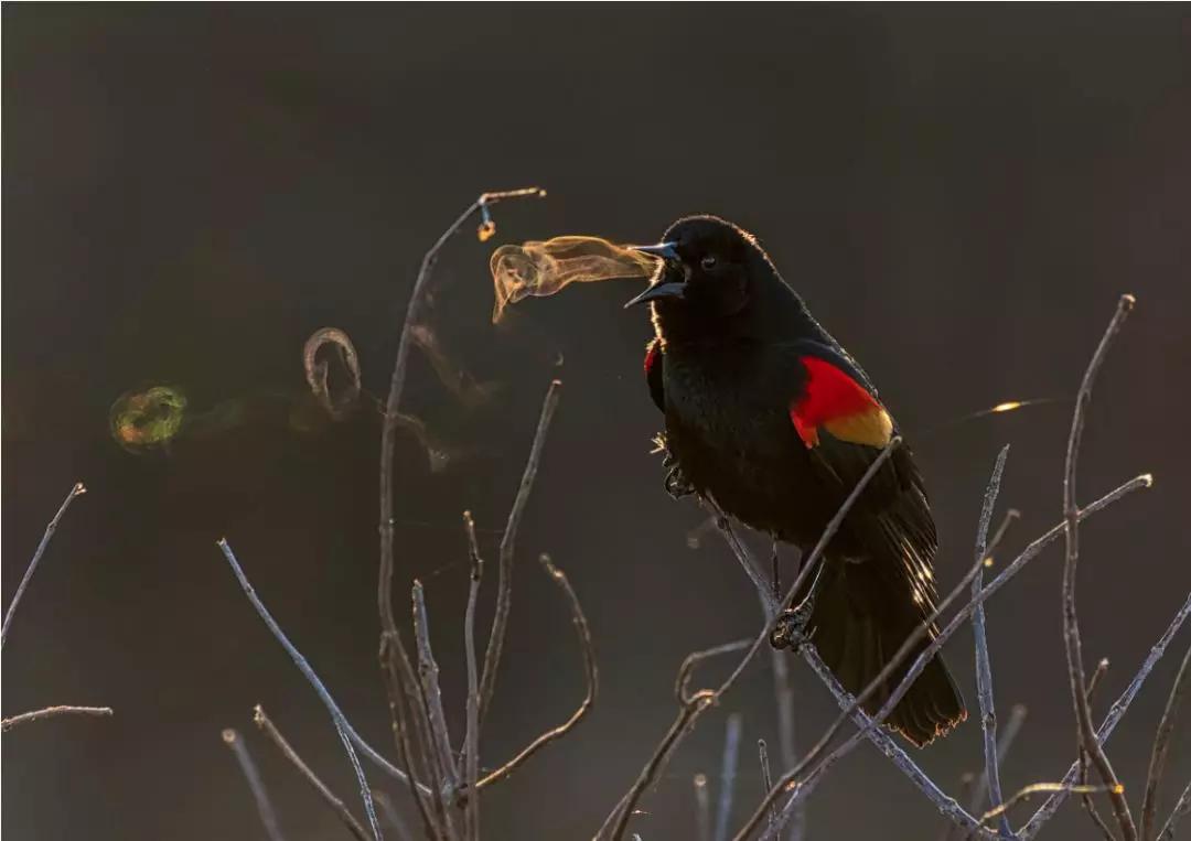 照片背后的故事:“每個(gè)寒冷的早晨我都會(huì)去我家附近的亨特利草地公園拍鳥,因?yàn)槲蚁氩蹲进B叫時(shí)因呼氣所形成的‘煙圈’。