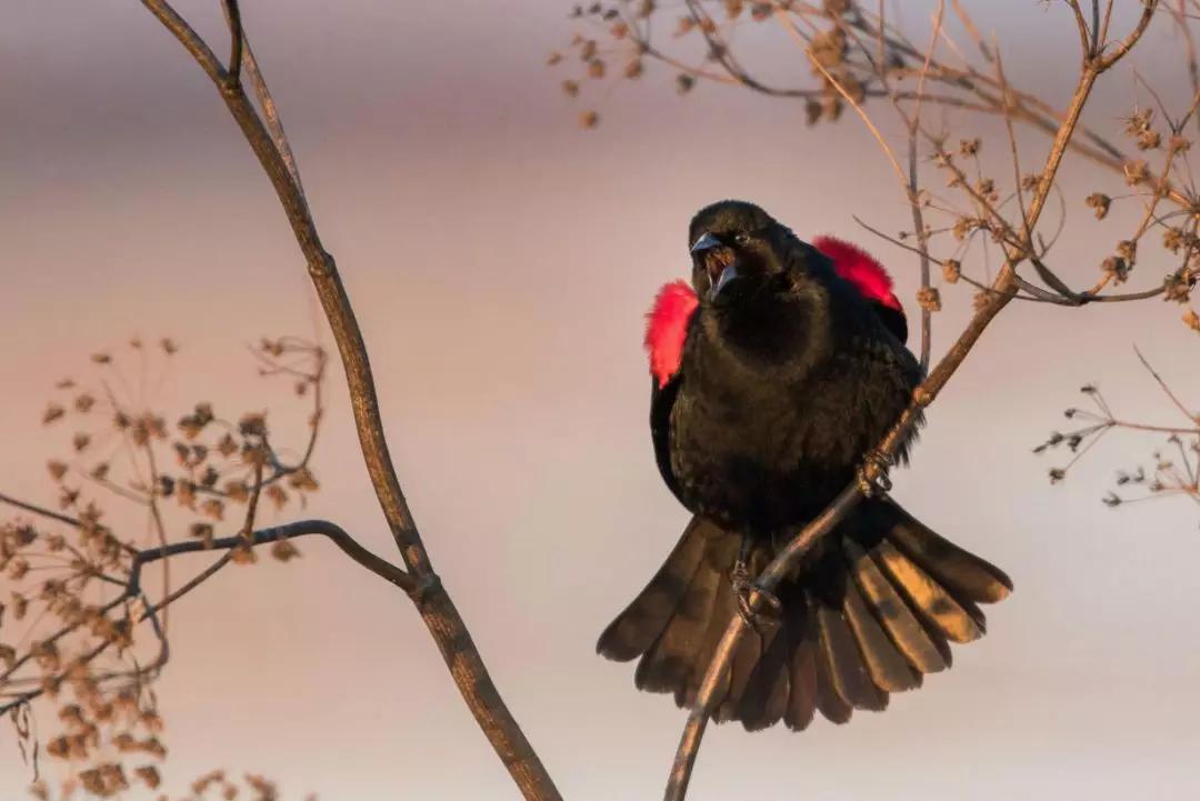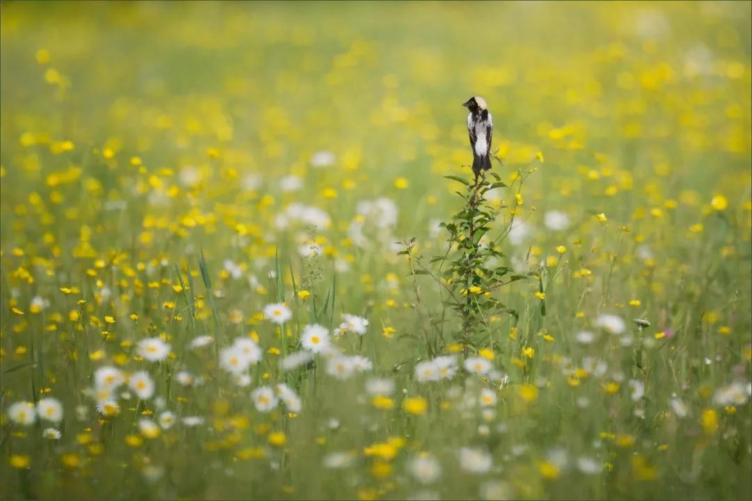 照片背后的故事:“日落時(shí)的鄧恩牧場草原變成了一片金黃色的草地,這只雄性食米鳥短暫的落在樹枝上好奇地掃了眼我的相機(jī)。他機(jī)械般的鳴唱被幾十只在我頭頂飛過的同伴回應(yīng)著,我趕緊在它飛走前拍下了這張照片?!?/span>
