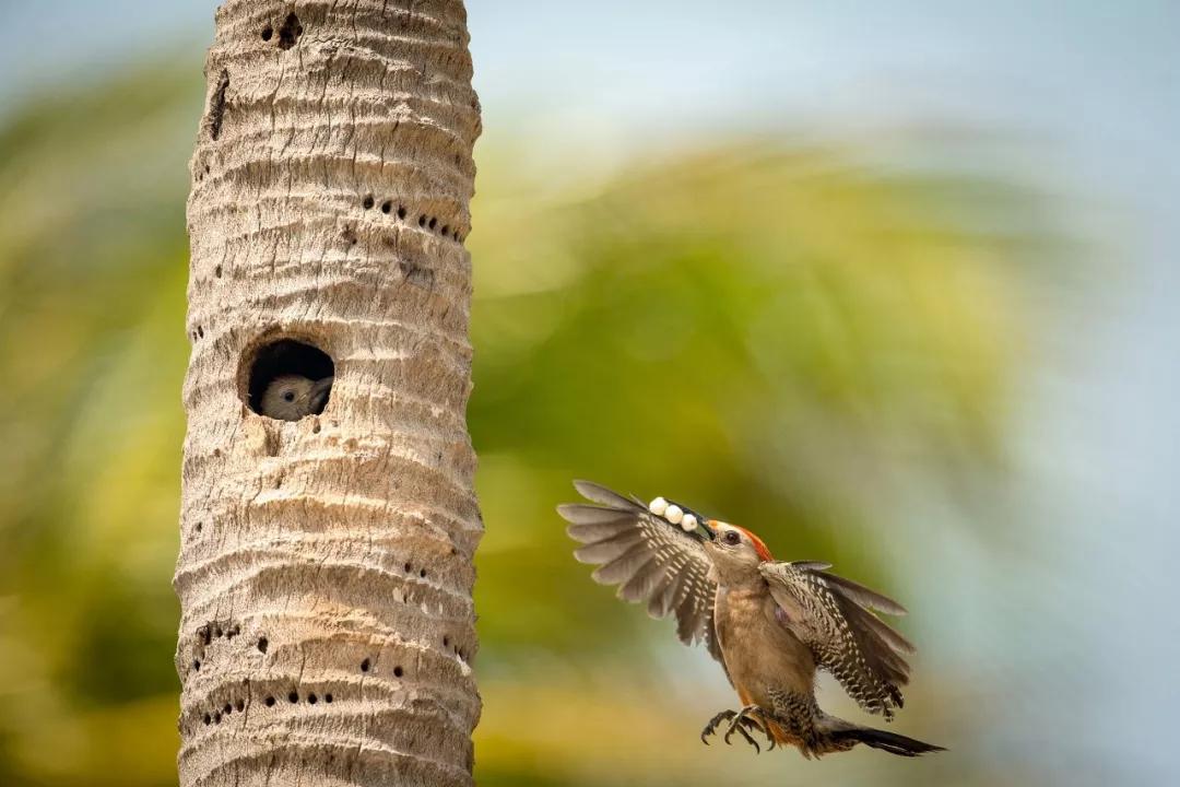 照片背后的故事:“去年,我搬到圣地亞哥不久后,就發(fā)現(xiàn)了一對(duì)黃鸝頻繁造訪我院中的加利福尼亞蒲葵。當(dāng)我看到雌性黃鸝在用蒲葵葉上的纖維搭巢時(shí),我立刻拿起了我的相機(jī)。
