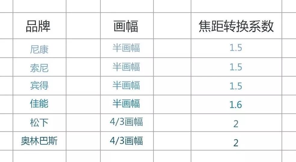 那么,如何進行有效的轉(zhuǎn)換?可以看下各大相機品牌的轉(zhuǎn)換系數(shù)。