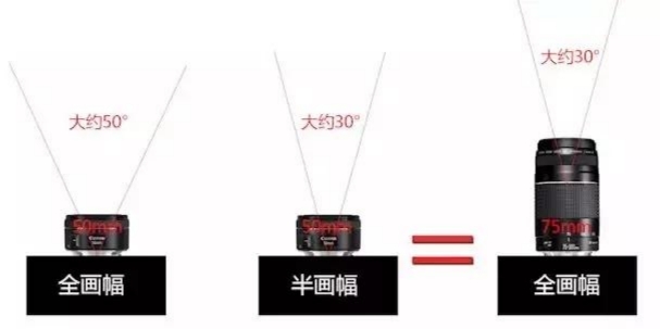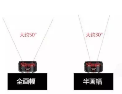 還需要注意一點,相同的焦距鏡頭用在全畫幅、半畫幅相機上也是有一定差距的。比如,50mm的焦距鏡頭用在全畫幅機子上,它的視角就是50°左右,而用在半畫幅機子上視角就只有30°左右。